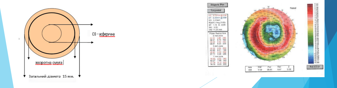 М’які контактні лінзи спеціального дизайну для рогівок, кривина яких змінена рефракційними хірургічними втручаннями.