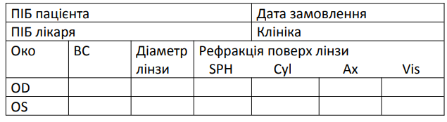• Рефракцію поверх лінз після суб’єктивної перевірки додайте у замовлення лінзи.