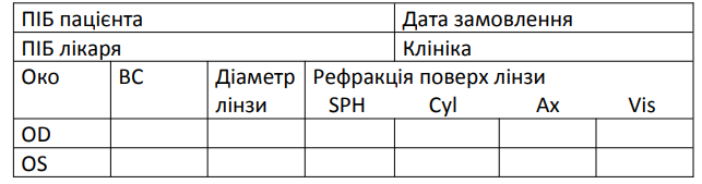 • Рефракцію поверх лінз після суб’єктивної перевірки додайте у замовлення лінзи.